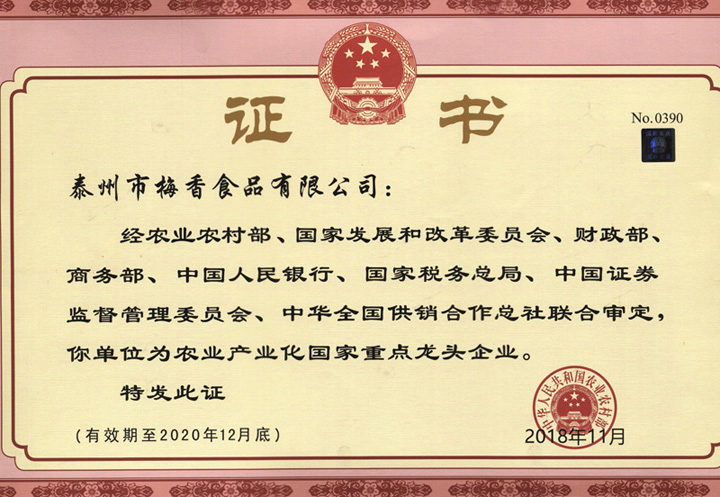 農(nóng)業(yè)產(chǎn)業(yè)化國家重點龍頭企業(yè)